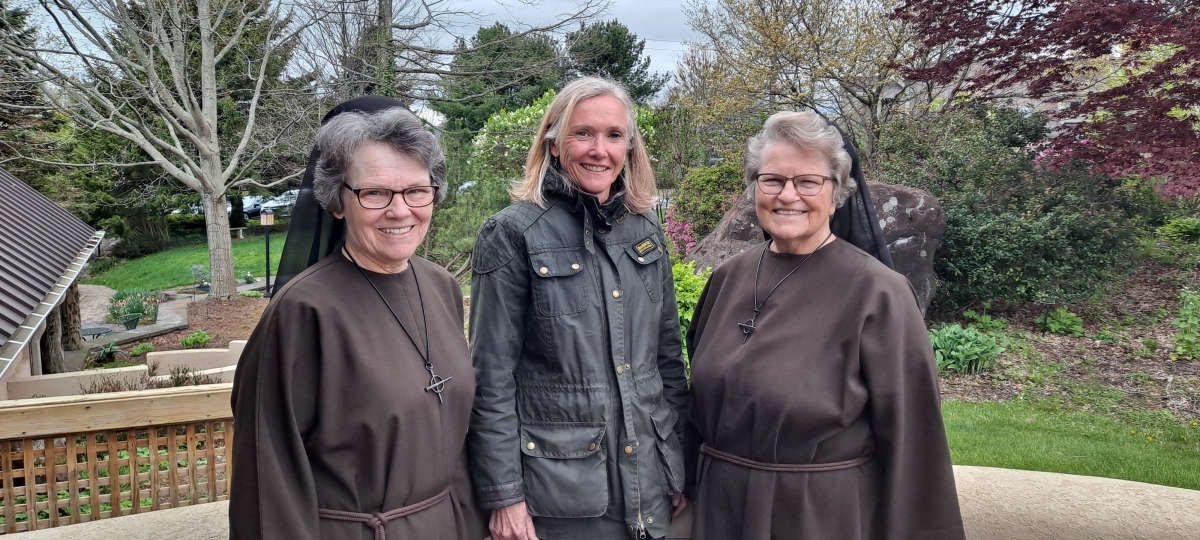 Rhona Free, Ph.D., President, University of Saint Joseph, (center) will receive the Jim Calhoun Community Service Award at this year’s Franciscan Sports Banquet and Silent Auction on June 7, 2022, at the Aqua Turf Club. Dr. Free recently visited Sister Barbara Johnson, FSE, Executive Director, Franciscan Life Center, and Sister Suzanne Gross, FSE, Administrator, Franciscan Home Care and Hospice Care. This fundraising event benefits these two programs offering counseling, education, home health care and hospice care.