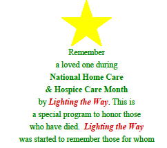 Remember a loved one during the month of November, National Home Care and Hospice Care Month.