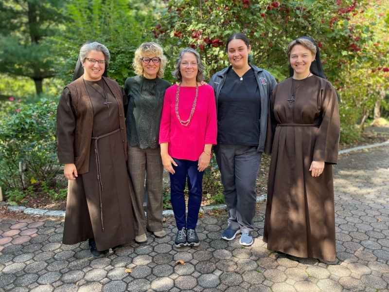 During the month of October, we celebrate National Physical Therapy Month. Franciscan Home Care and Hospice Care gives thanks for its team of physical therapists who continue to meet the needs of those for whom we provide care in the home. From left: Sister Carmina Rose, Julie, Kathleen, Therapies Supervisor, Bethany, and Sister Faith Marie.