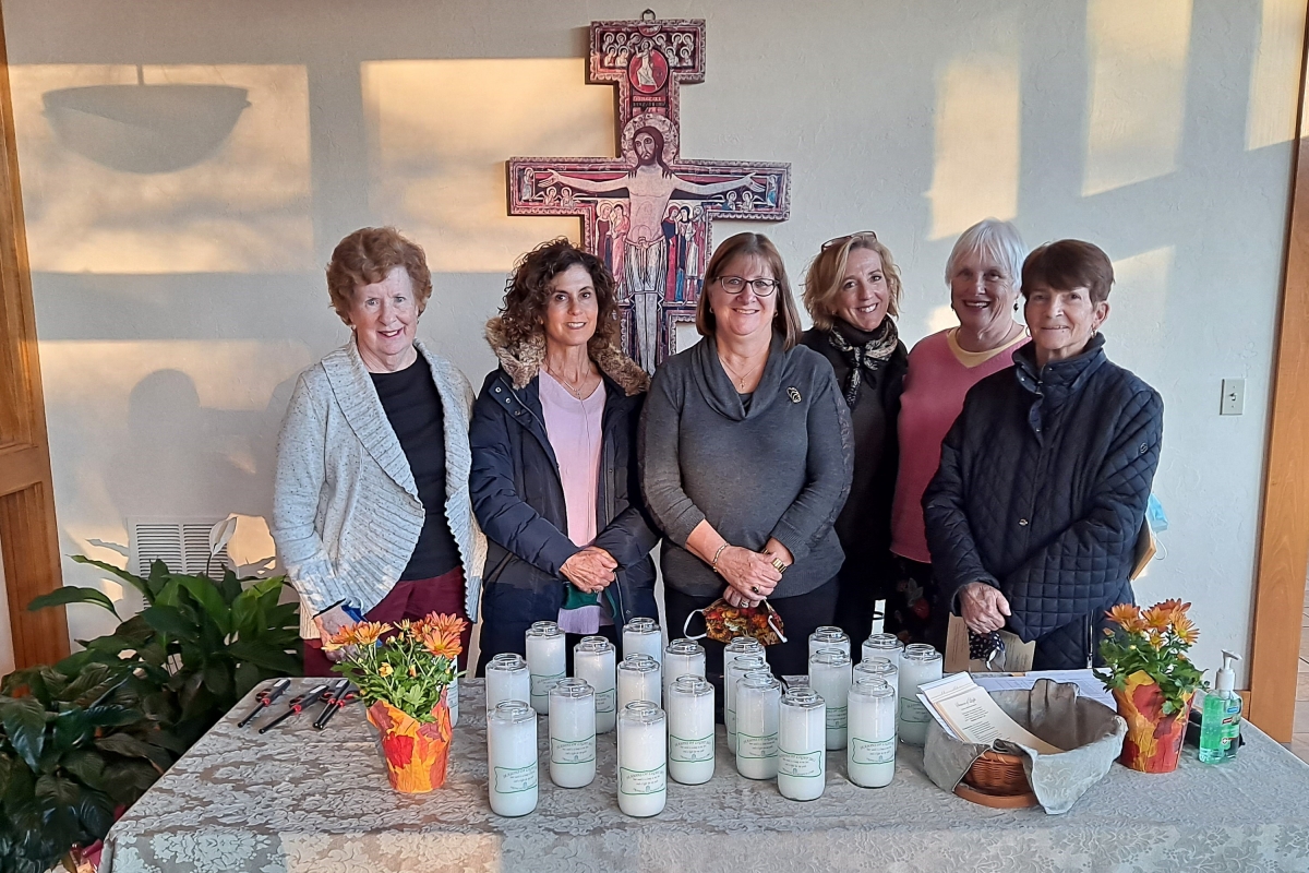 Hospice volunteers presented candles to families of loved ones who had been served by Franciscan Hospice Care during the year. From left, Barbara Morrison, Sandra David, BJ Raby, Hospice Volunteer Coordinator. Susan Pier, Christine Bolio and Judy Kupstis.