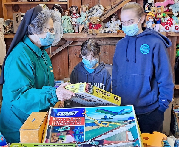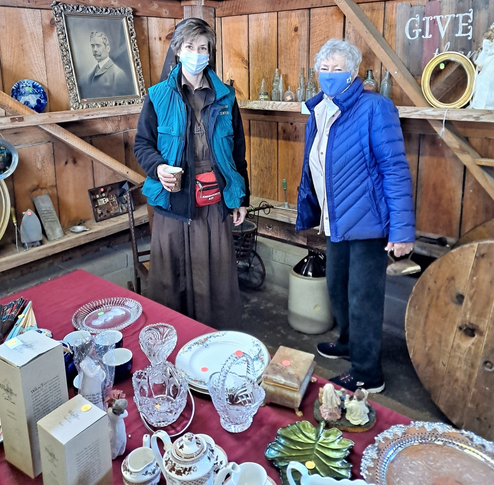 Sister Amaris Salata, FSE, with Mary O’Sullivan at antiques and collectibles.