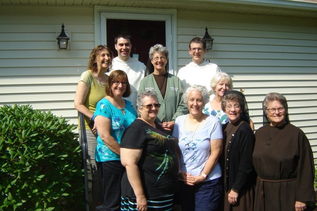 Hospice Interdisciplinary Team front, left to right: Jan Louiselle, RN; Laura Borelli, RN Hospice Director; Sister Catherine Mary Clarke, FSE, LCSW; Sister Suzanne Gross, FSE, Administrator. Second Row, left to right: B. J. Raby, Hospice Volunteer Coordinator; Sister Jilda Marie Chabot, FSE, RN; Agnes Dion, RN; Top row, left to right: Audrey Lefkowitz, MD, Medical Director; Brother Bartholomew Calvano, OP; and Brother Martin Davis, OP.